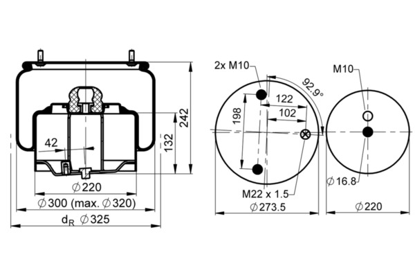 Пневмоподушка DAF XF/CF 13- правая SABO 08-02-02-1668